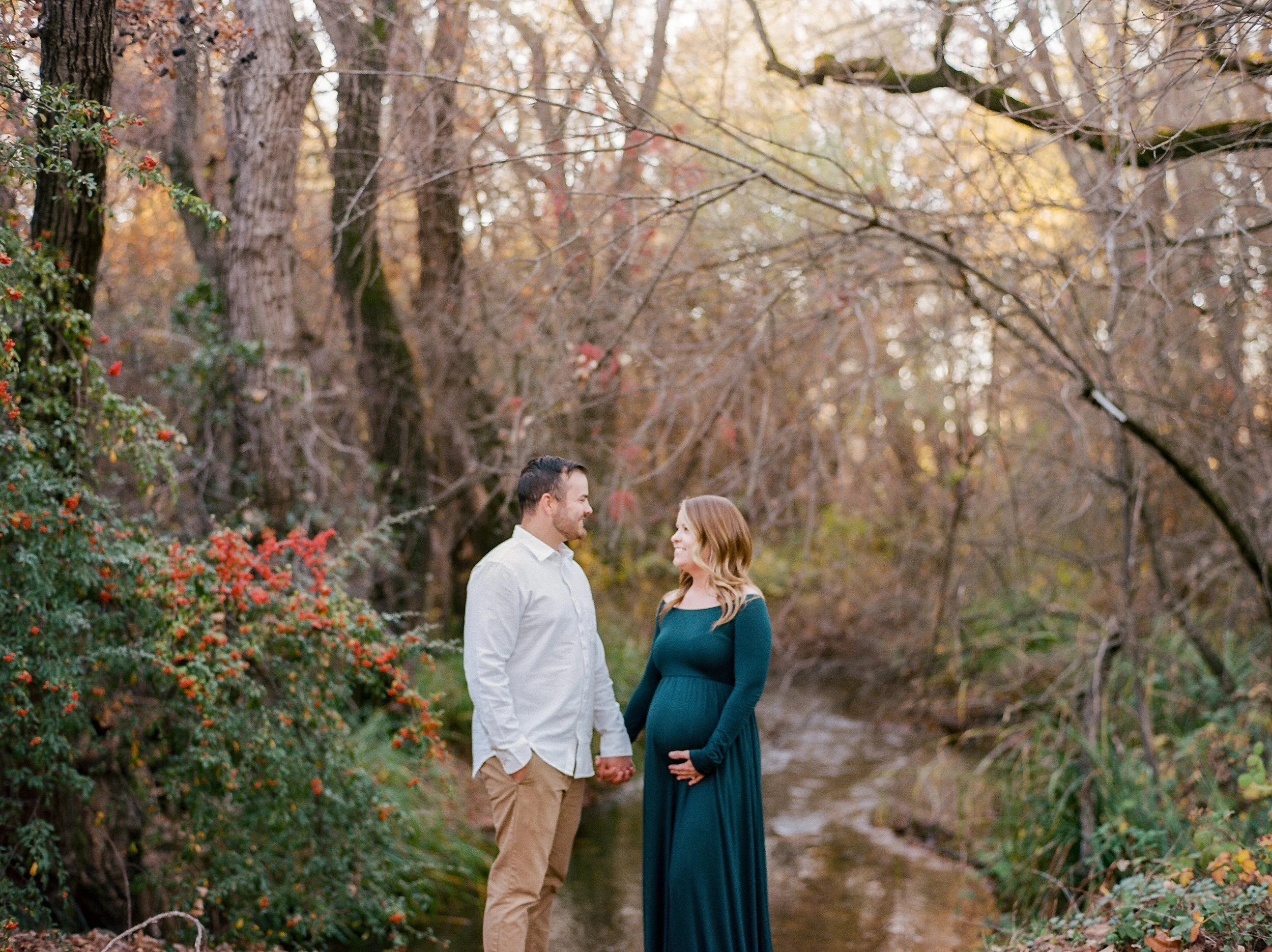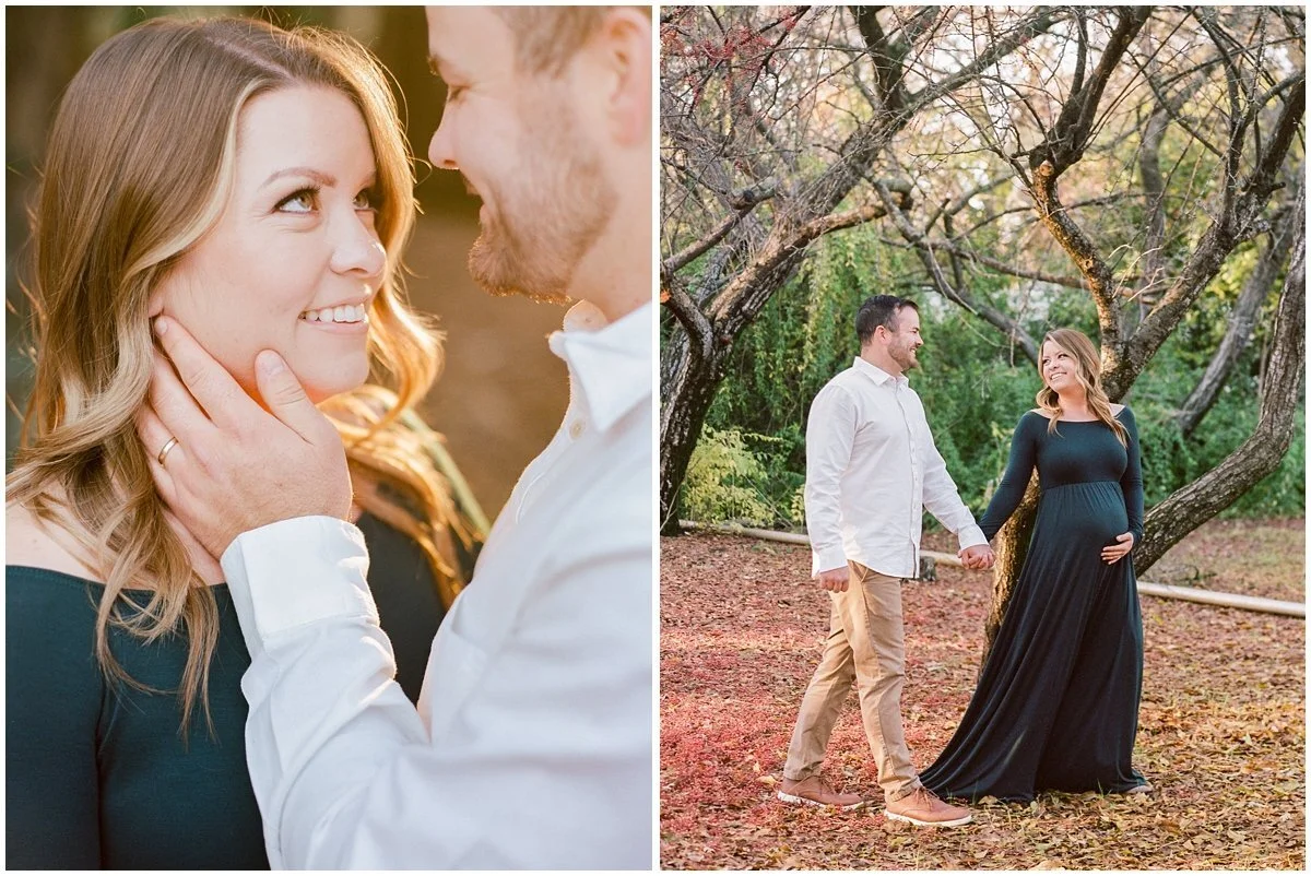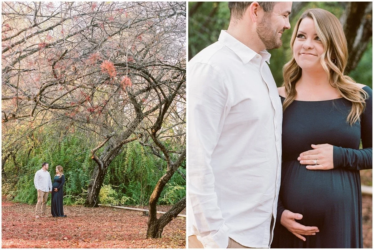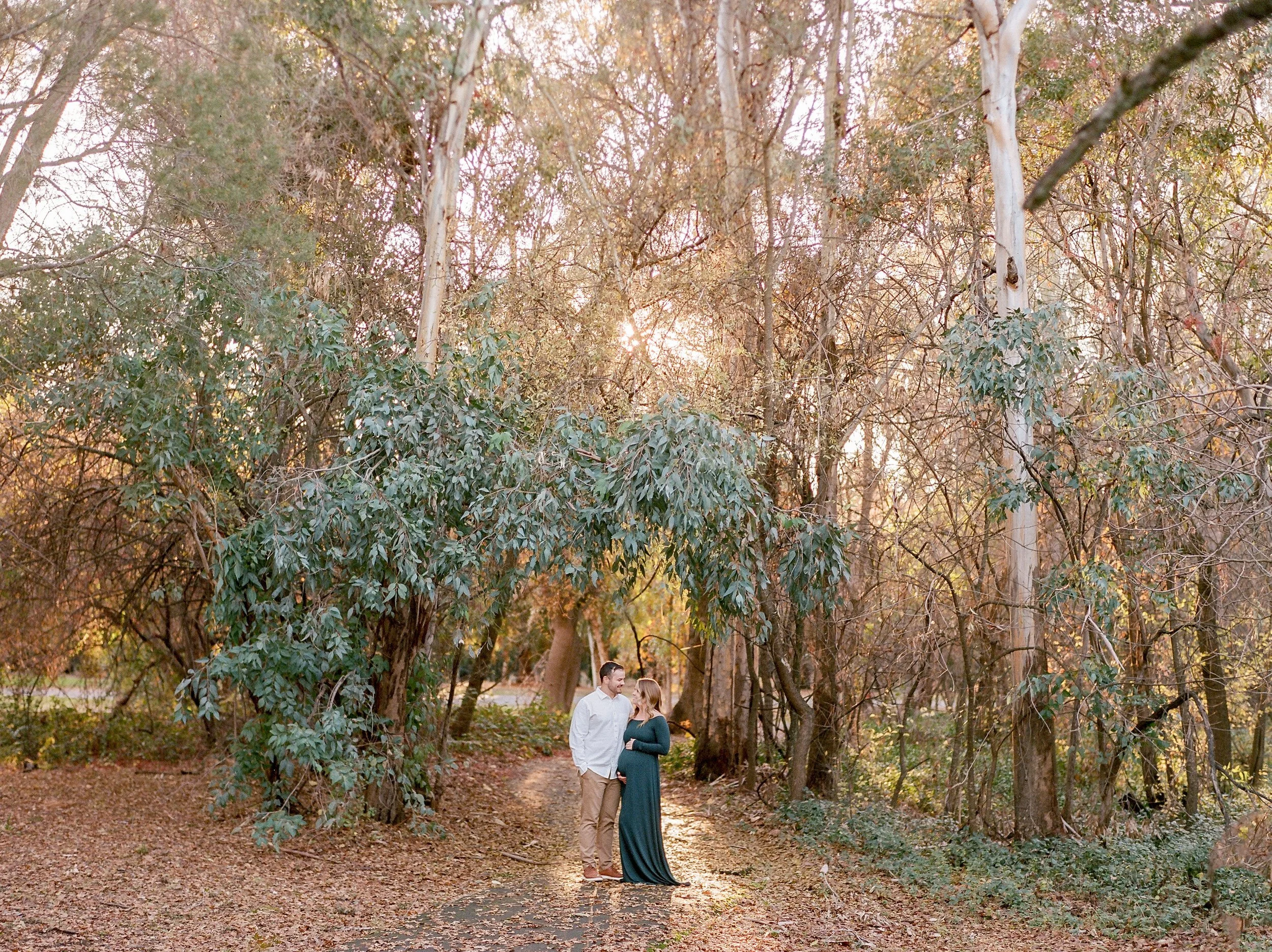 We photographed their Chico winter maternity session at the Tree Farm. We had a rainy few weeks so we rescheduled and had the most amazing weather the day of their photo session. I love all the pockets of natural light we found as the sun began to set.